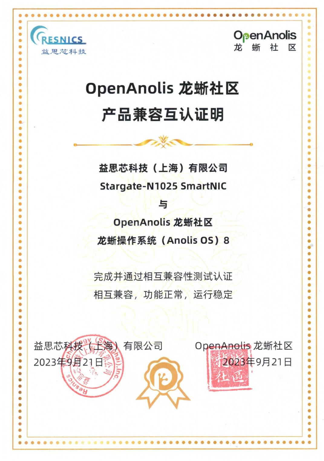 近日,益思芯科技(上海)有限公司(以下简称“益思芯科技”) 与OpenAnolis龙蜥社区完成兼容性认证。经过在多计算架构上全面的测试之后,益思芯Stargate-N1025 SmartNIC 在性能、功能、稳定性和安全性方面均表现优异,能满足关键性应用的要求,符合龙蜥社区的标准,双方完全兼容。