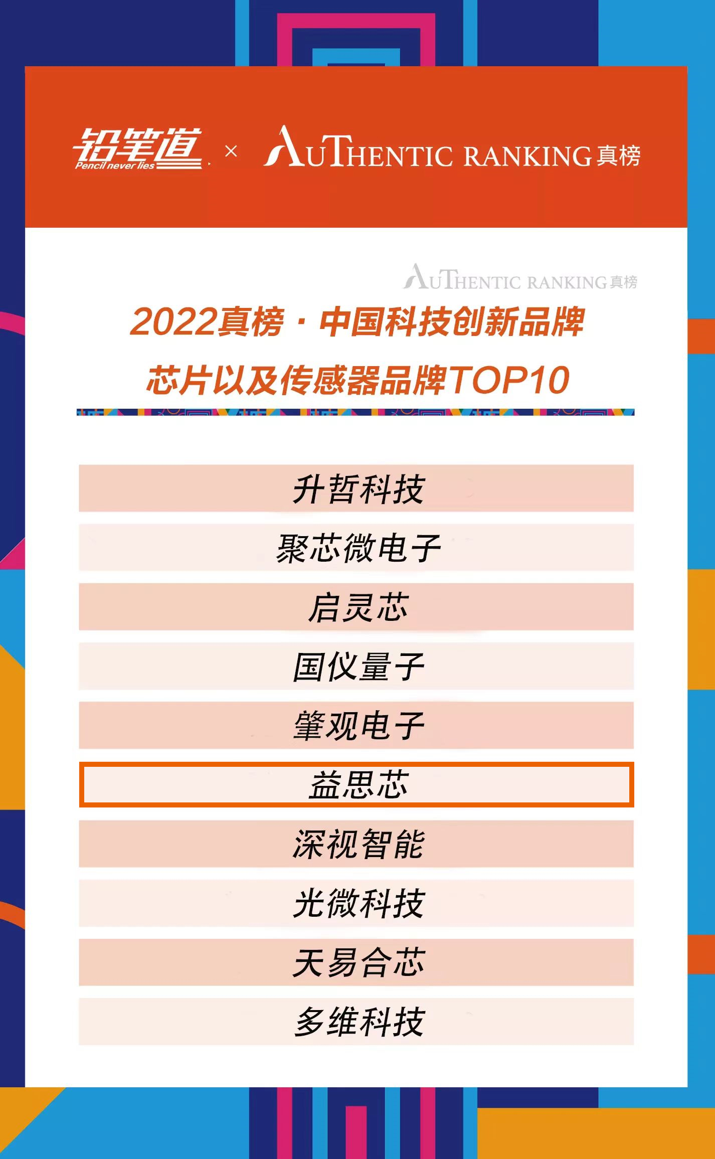 益思芯科技入选2022真榜 · 中国科技创新品牌榜TOP100