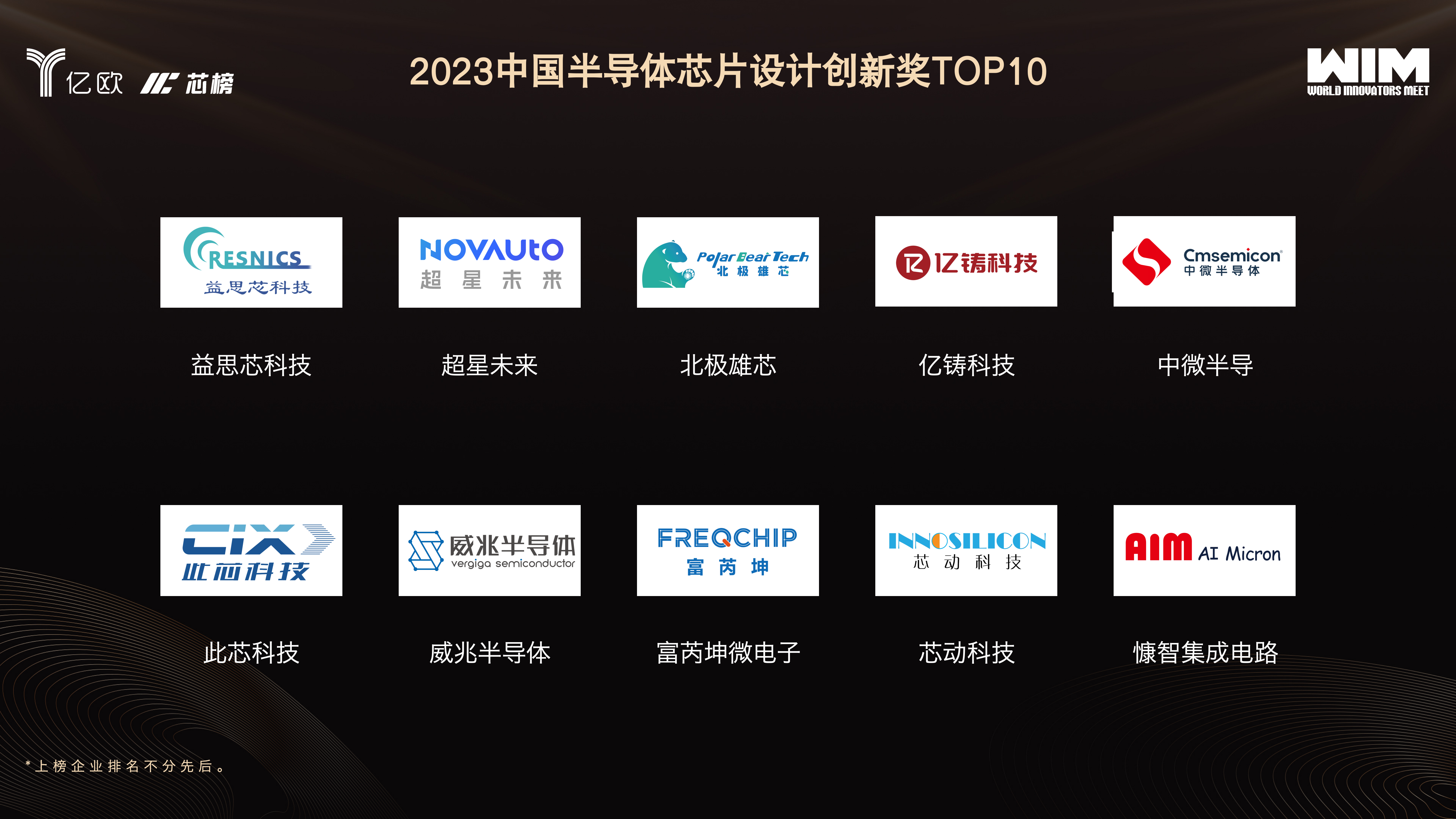 本次榜单由亿欧和“芯榜”联合发布,亿欧基于企业申报材料以及亿欧数据库资料,根据半导体产业特点,从企业背景、技术创新能力、工艺技术水平、人才团队和研发能力、知识产权和专利数量、成功案例和市场份额等几大核心维度,结合专家打分、用户评分、访谈调研等研究方法,历时一个多月的评选,最终确定入选企业名单。榜单中的企业都是在芯片设计领域享有极高声誉和影响力的领导者。在芯片设计技术、创新能力、产品质量以及市场竞争力等方面都表现出色,为中国半导体产业的发展做出了重要贡献。
