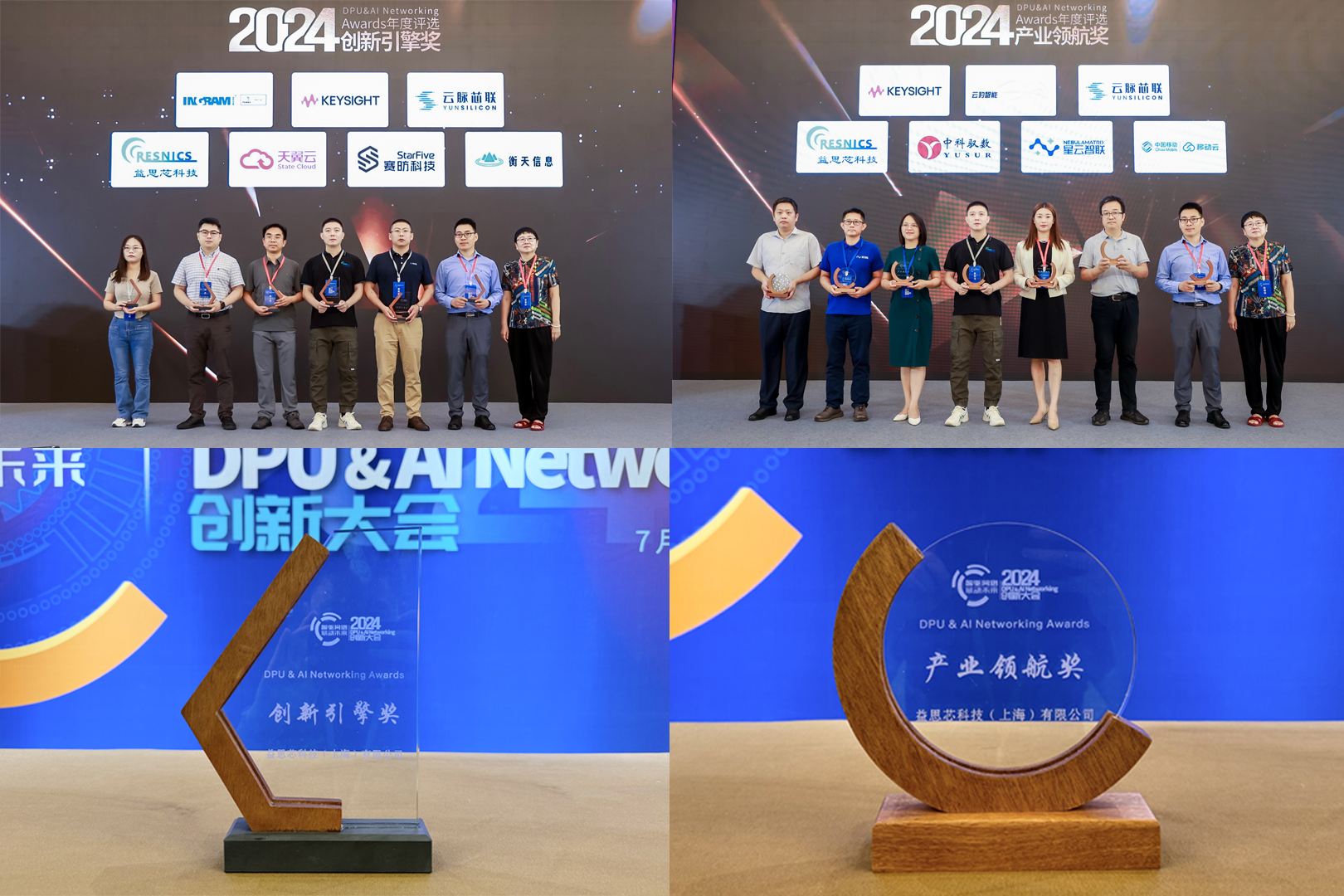 为了表彰在 DPU 技术创新中取得卓越成就的单位,2024 DPU & AI Networking Awards 评审委员会经过严格的评审与筛选,益思芯科技凭借在 DPU & AI 芯片领域超强的创新能力脱颖而出,同时荣获品牌类 “产业领航奖”和技术类“创新引擎奖”两项大奖!
